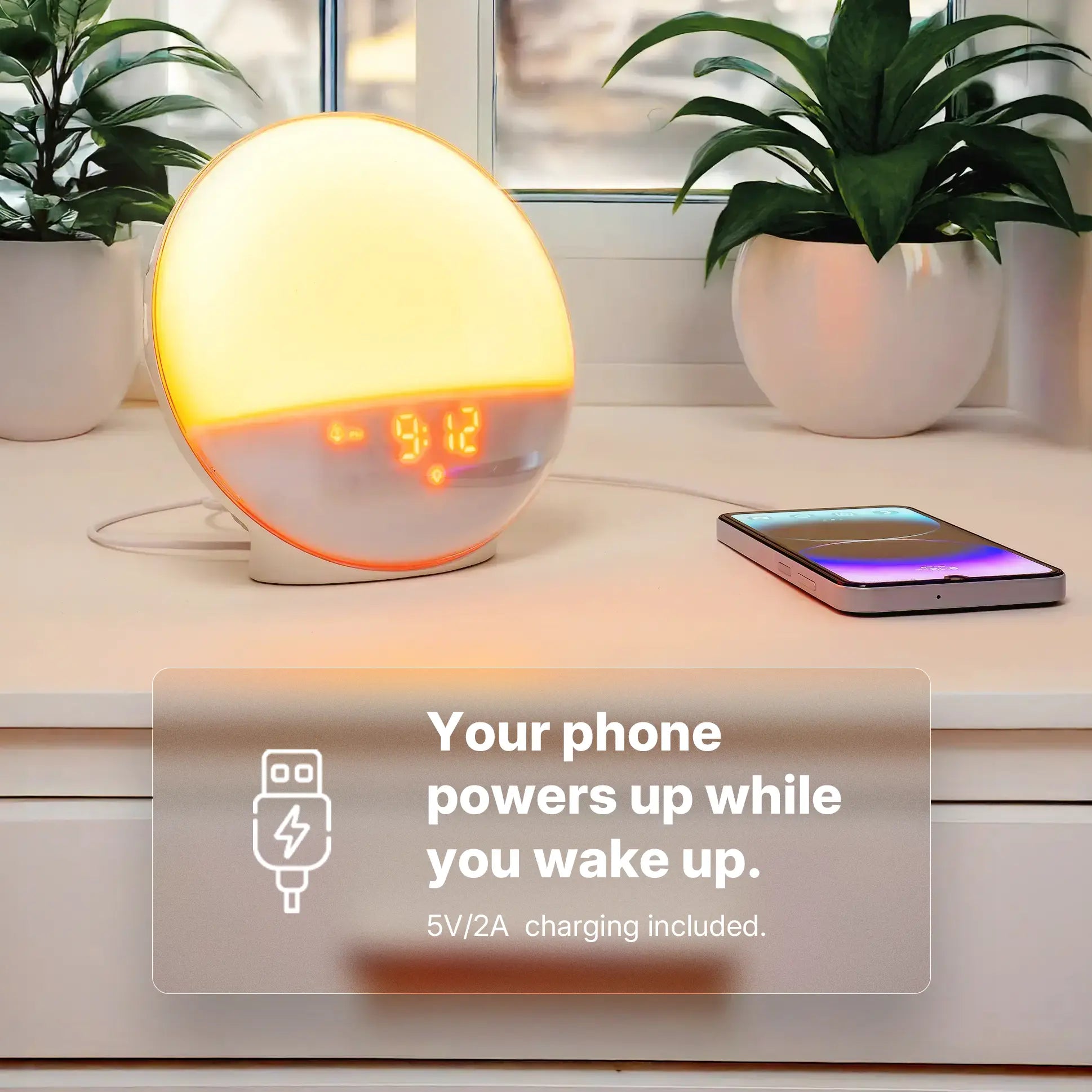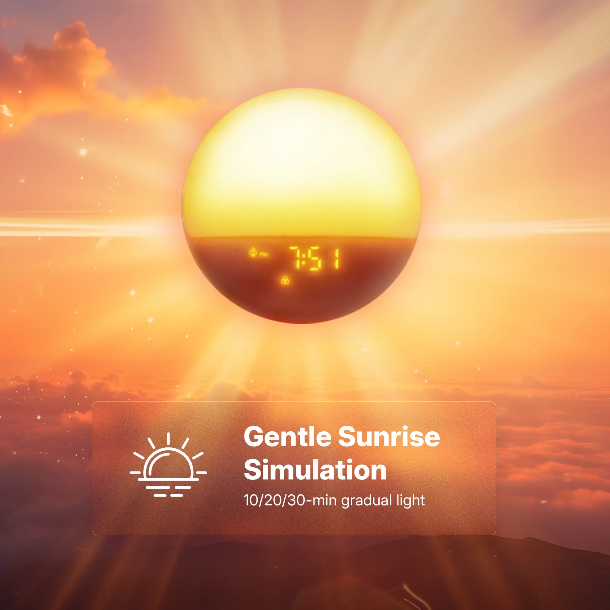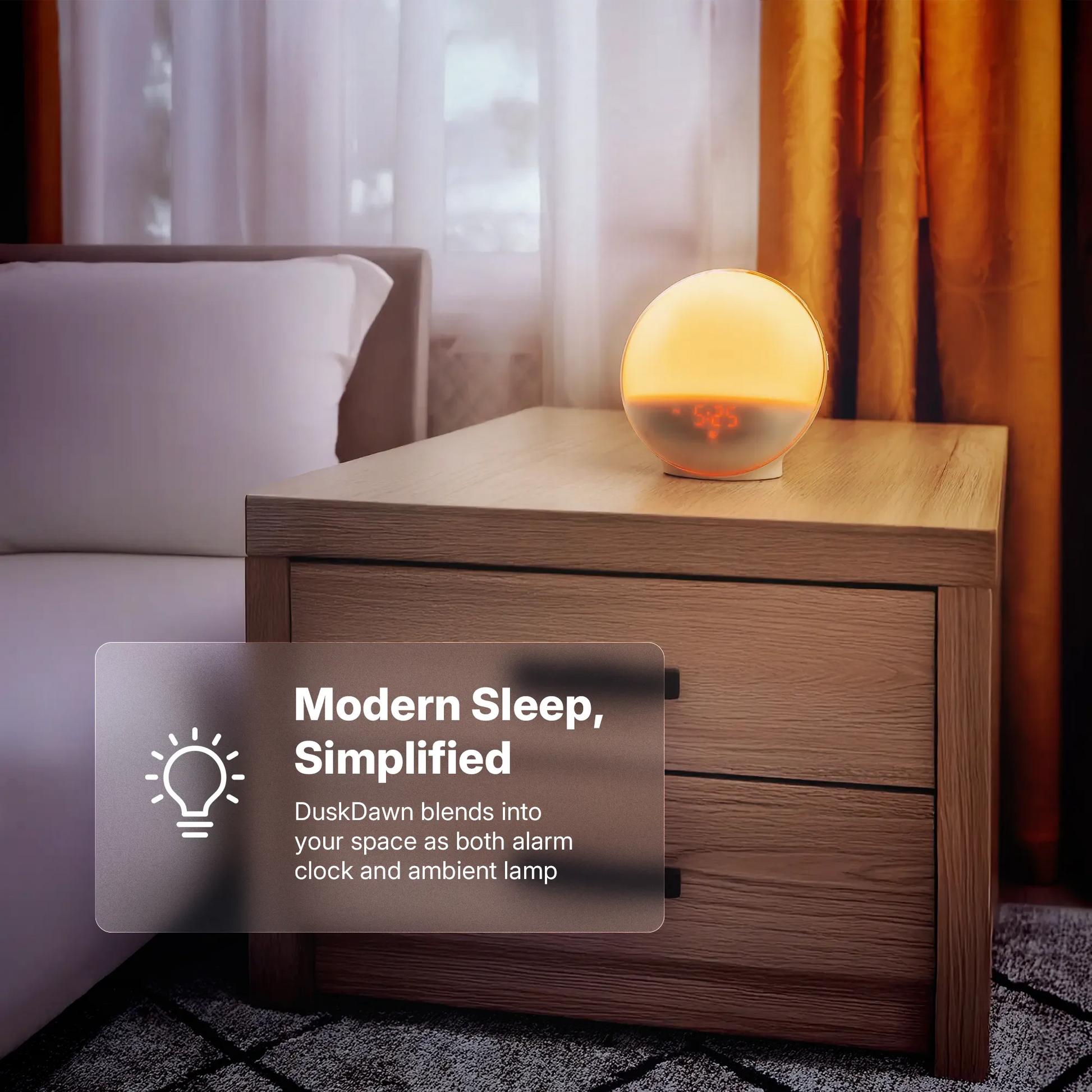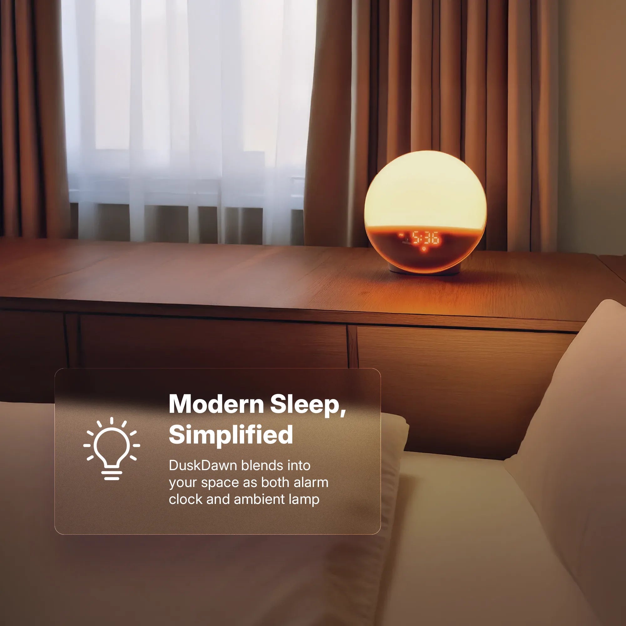 The sunrise alarm clock that trains your body to wake up energized. DuskDawn combines gradual light therapy, nature sounds, and FM radio to make mornings something you'll actually look forward to